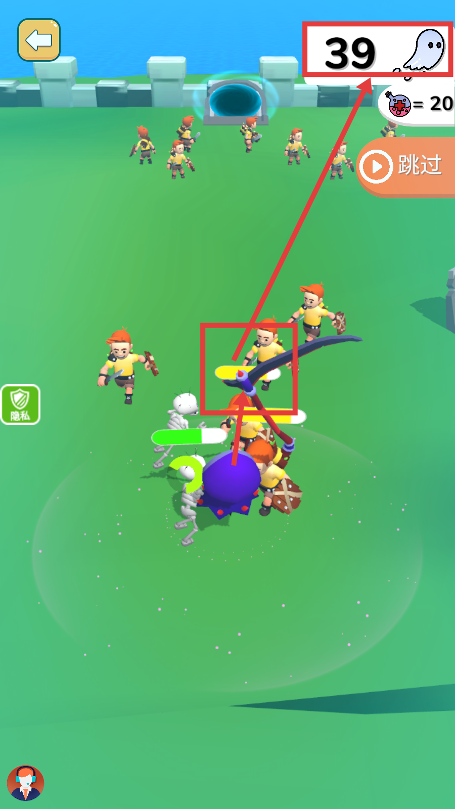 2、战斗中操控角色用镰刀攻击敌人,留意右上角的计数,及时击败靠近的敌人,保持战斗节奏。