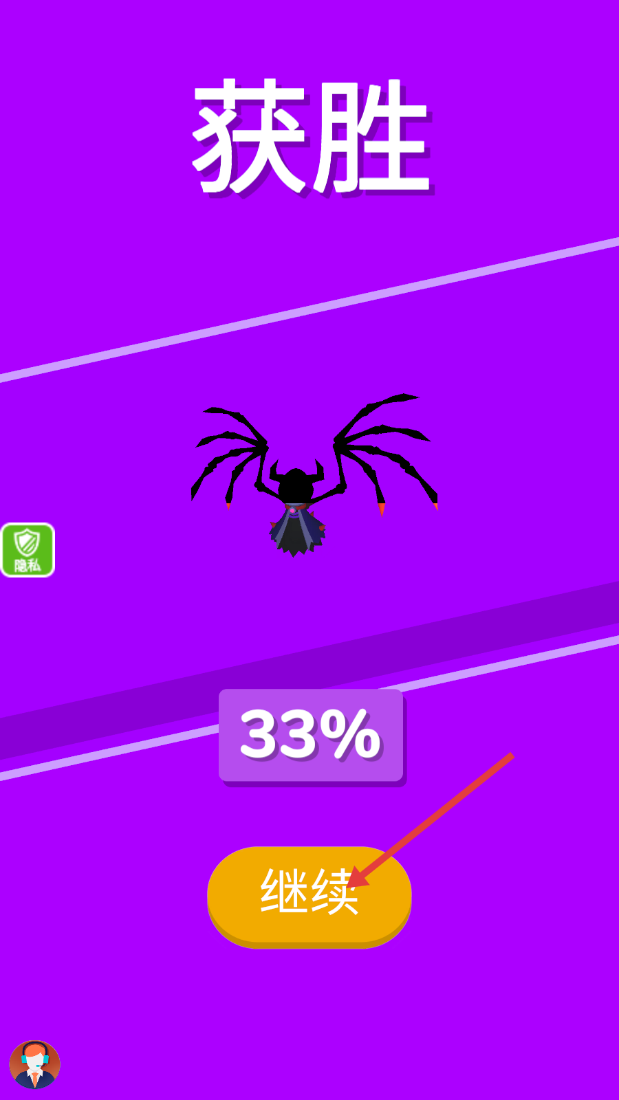 4、获胜后,界面显示【获胜】,点击黄色【继续】按钮,可进入下一段游戏内容,继续挑战。