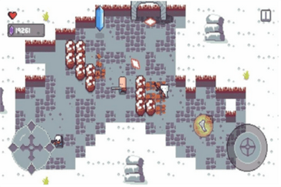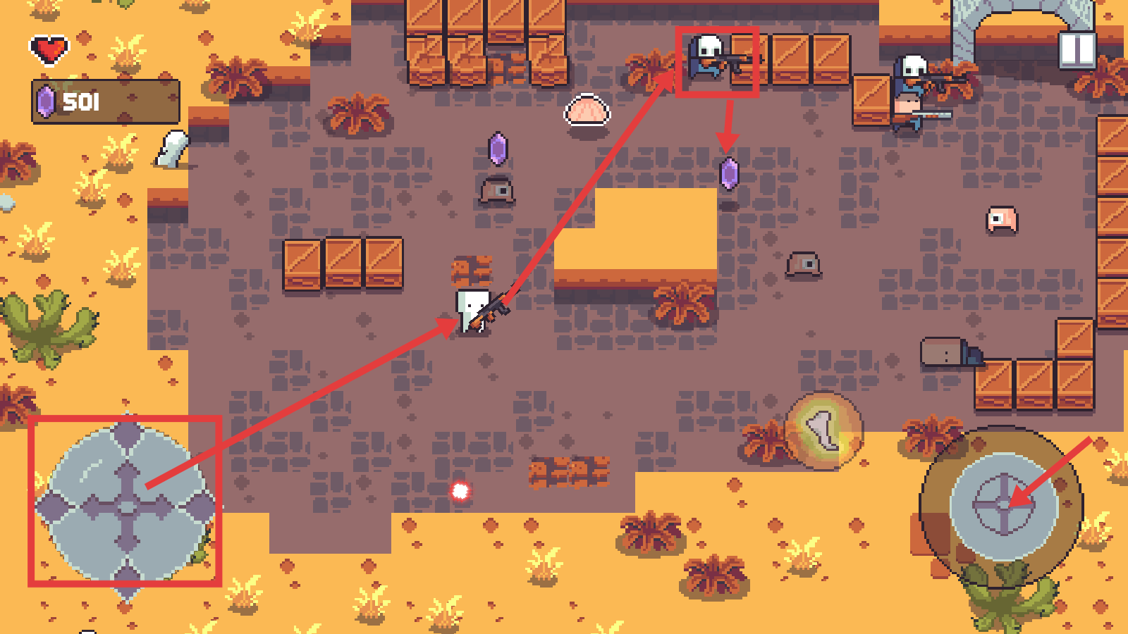2、借助左侧摇杆移动角色,用右侧攻击按钮瞄准敌人,击败持武器的敌人能获取【紫水晶】,积累资源。