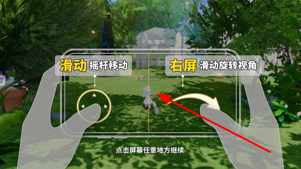 1、推动摇杆不同方向,控制角色前进、后退、向左或向右移动,同时右屏滑动可旋转视角观察环境。