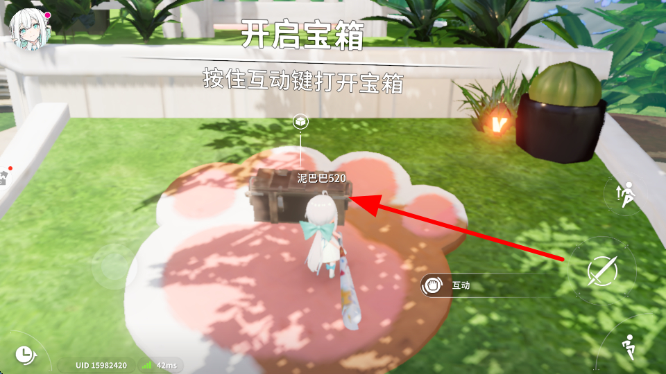 4、开启宝箱要先靠近宝箱,按住互动键,就能打开宝箱,获取宝箱内的物品,助力角色成长或解锁奖励。