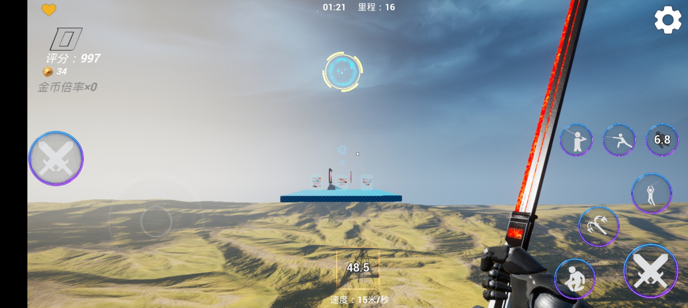 5、当遇到黄色圆框提示时,点击右侧的钩子按钮,就能迅速穿越障碍。
