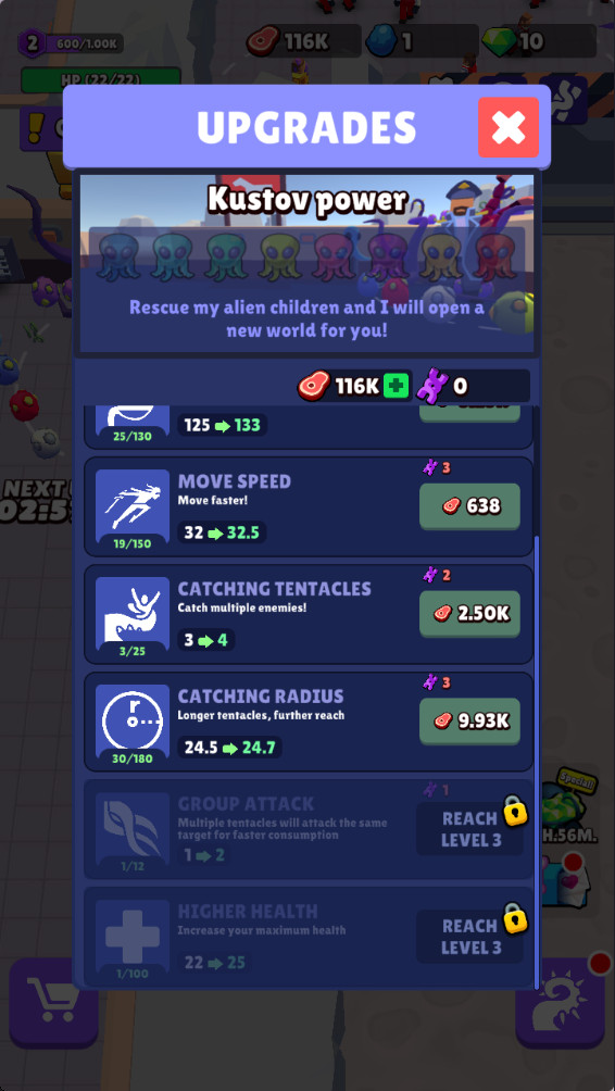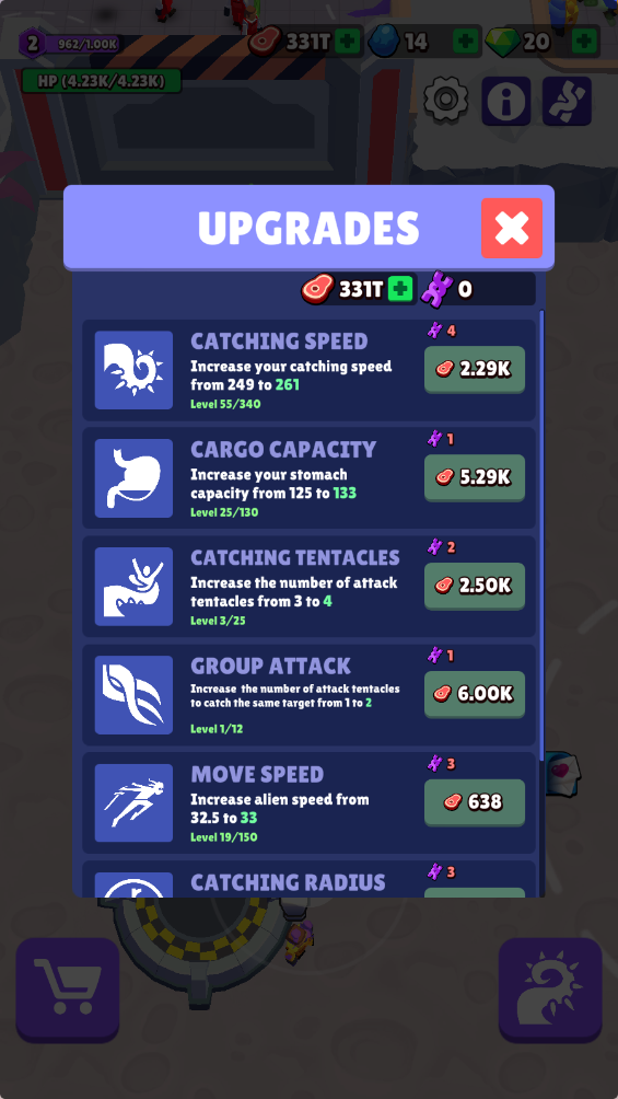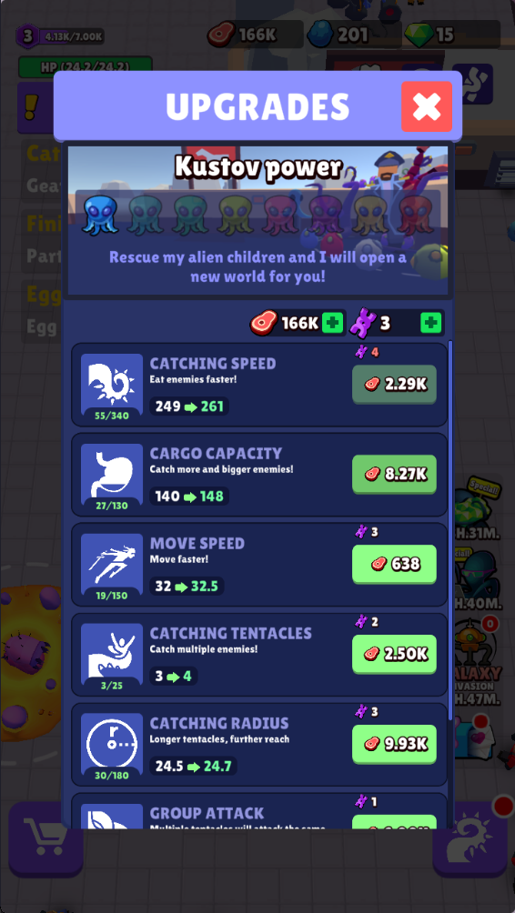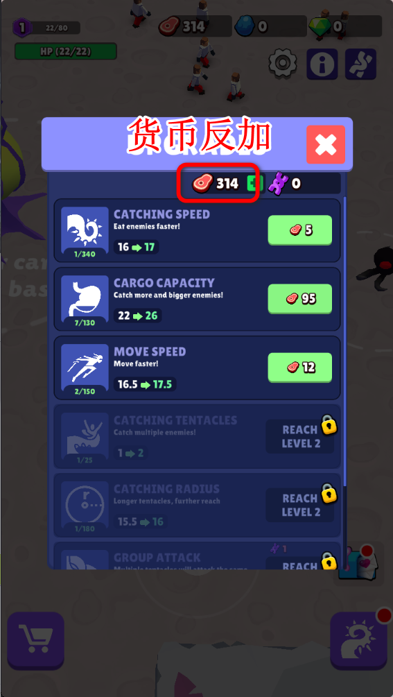 当食物足够后,可以用来升级自己的能力。