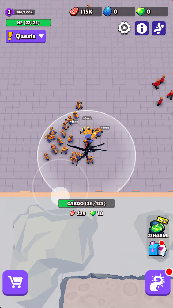 靠近敌人身边会迅速消耗它们的血量,杀死敌人后会把敌人装进背包。
