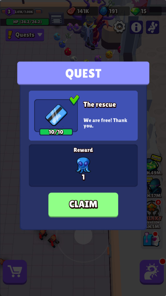 3.完成任务即可获得一个蓝色章鱼