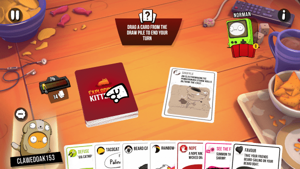 7.你就直接的打出来,不浪费你的回合,直接可以抽一张牌到手里,只要不是炸弹猫就好。