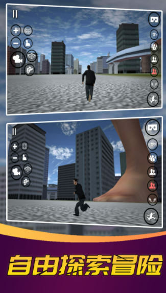 1、在游戏中操控巨人来行动吧,要注意不要随便的踩到人或者物品,代入感满满。