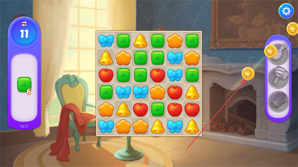 2、使用右侧箭头指向的道具,触发金币掉落获取资源。