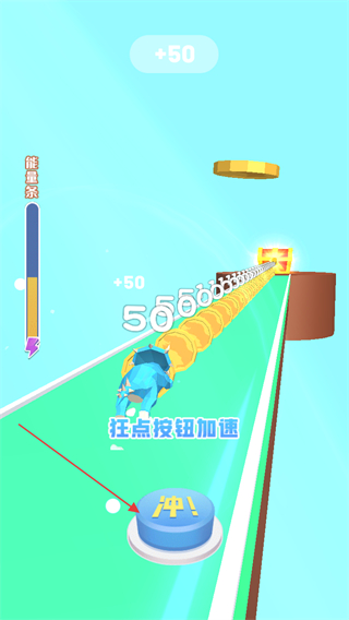 2、奔跑过程中,收集道具提升能量,使左侧能量条增长,助力更好冲刺,接近终点时保持好节奏。