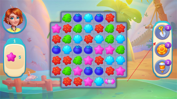 4、关注右侧道具栏,当满足使用条件时,点击道具,如铲子,借助道具助力完成关卡目标。