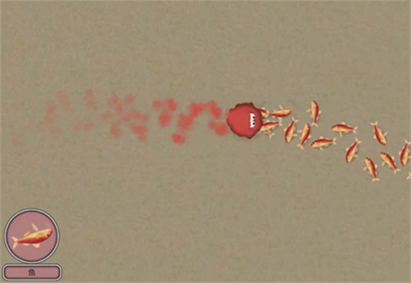 2、在水中寻找比自身小的绿色球体等食物,靠近并吞噬它们,增加ENER能量值。