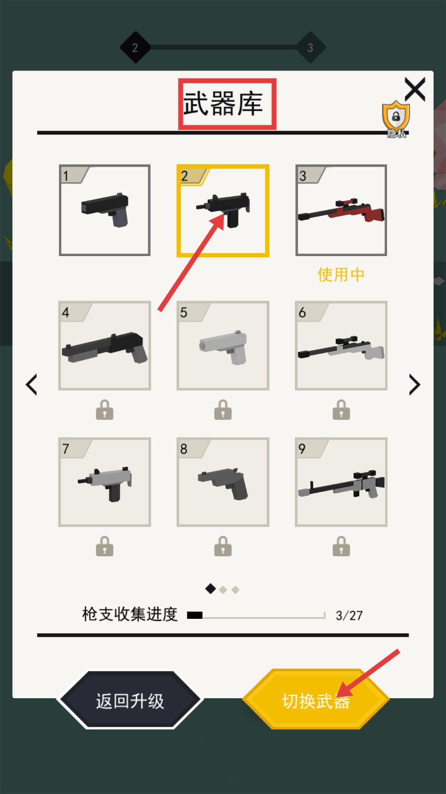 4、完成关卡后,进度从【3】推进至【4】,再次点击【开始游戏】,还可选择武器或领取额外护盾。