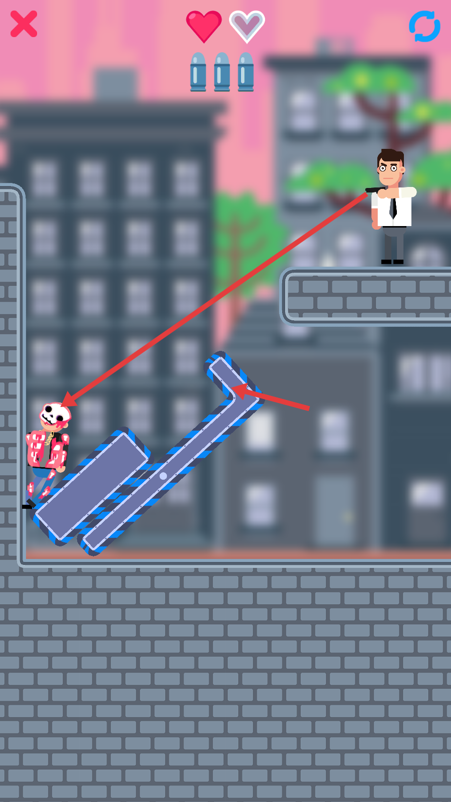 1、独创角度力度双轨射击系统,控制角度和力量,子弹真实物理反弹,特殊材质折射爆炸,达成连锁击杀。