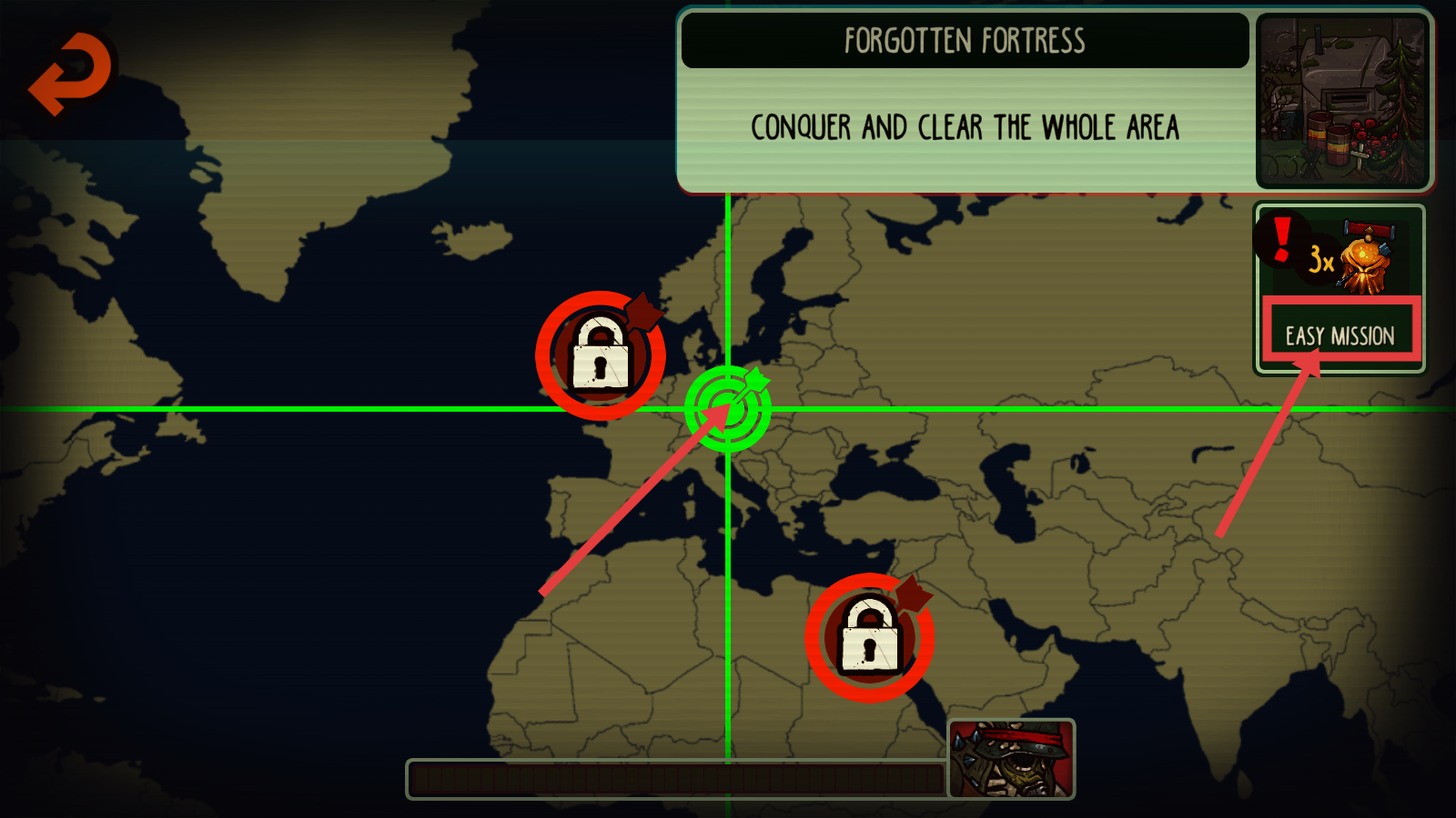 1、进入游戏,选择【EASY-MISSION】,前往【FORGOTTEN-FORTRESS】区域,开启征服并清理整个区域的任务。
