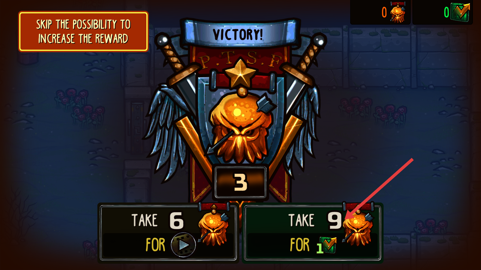 4、成功获胜后,界面显示【VICTORY!】,可选择【TAKE-9】对应的奖励,获取资源以提升后续战斗能力。