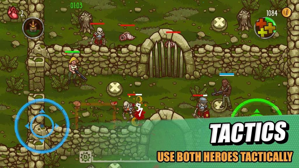 1、与英雄团队并肩作战建立防御线,抵抗僵尸入侵,角色分工明确通过组合技能发挥最大战斗力。