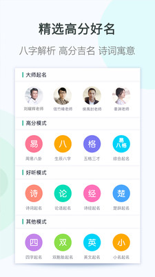 起名取名大全软件不仅深刻剖析了传统的五行八字,还结合易经命理,三才五格,以及古文诗词曲赋的文采,严谨的算法和专业易学国学大师的深厚知识沉淀,是各位宝爸和宝妈的优选。