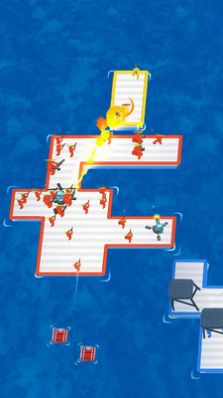 1、玩家拥有几个初始的小兵和木筏,在木筏上不断的扩大自己的领地。