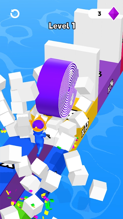 《翻滚大师3D》是一款非常有趣的休闲闯关类游戏,游戏里玩家是可以来控制角色去进行闯关的,而且游戏里玩家是要推着一个圆盘将你前面的障碍物全部都给撞碎掉。游戏的玩法还是很解压的玩家是可以多来玩的,每一关的难度都是会在增加的玩家是可以使用道具帮助自己的。