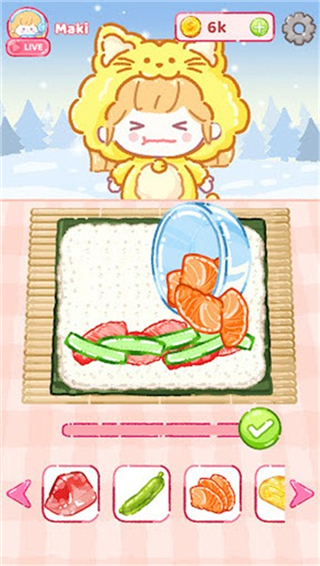 寿司制作步骤清晰,操作逻辑简单,无需复杂学习,即使初次接触,也能快速掌握制作技巧,开启寿司创作。