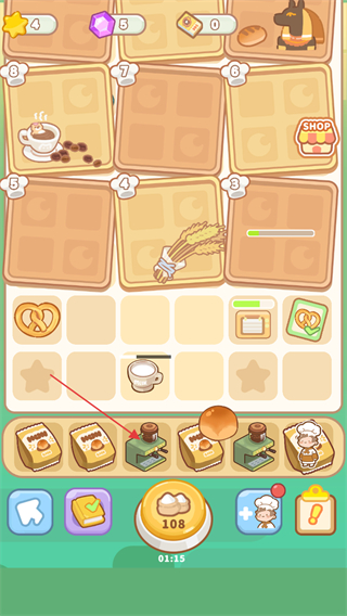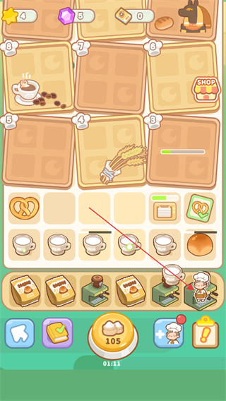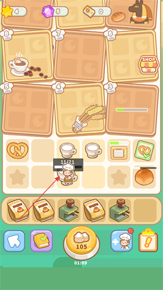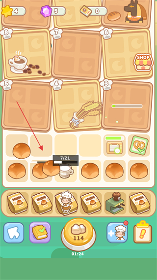 2、点击咖啡机,加工面包等材料,获取新食品。