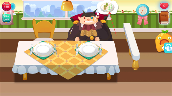1、进入游戏看到餐厅场景和顾客,准备为其制作食物。