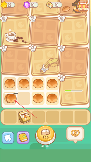 2、留意屏幕中的任务提示,比如收集一定数量的面包7/21,按要求持续制作面包。