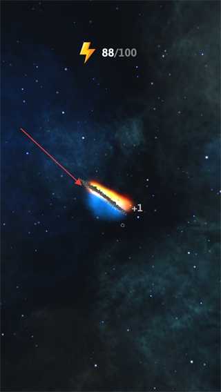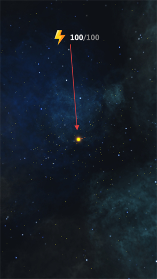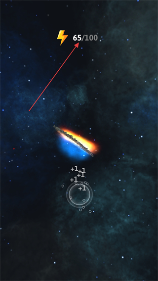 2、点击星球附近带有+1标识的地方,收集资源,提升闪电标志的电量数值。