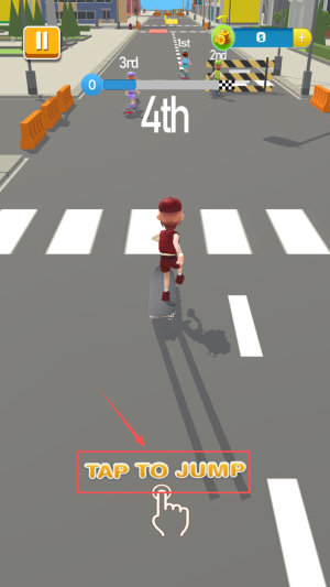 1、开启滑板跑酷:进入游戏选择角色,明确 “操控滑板男孩避障碍、完成跑酷” 目标,熟悉滑动、跳跃等基础操作方式。