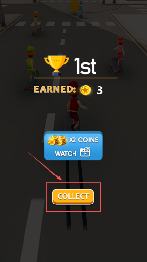 4、最后,获得第一名后点击“COLLECT”领取双倍金币奖励。