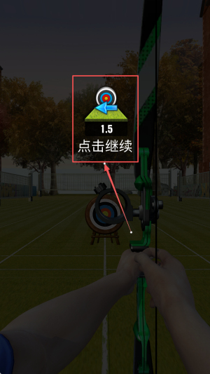 4、继续下一箭,在完成一次射击后,点击屏幕上的“点击继续”以准备下一次射击。
