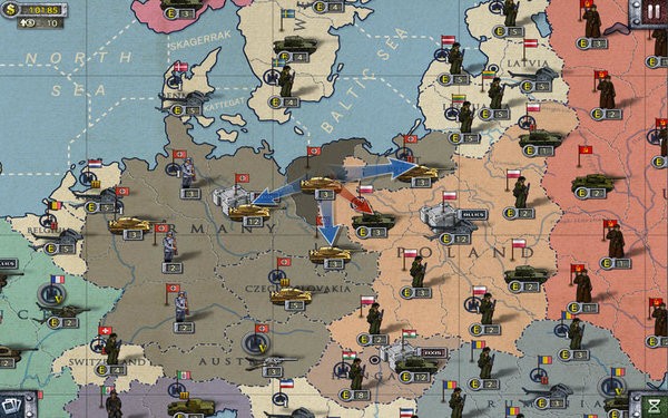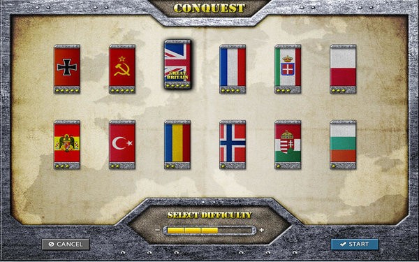 1939年有12个可选国家,包括德国、苏联、英国、法国等,在游戏里玩家需要在5个己方阵营国家的帮助下统一欧洲;