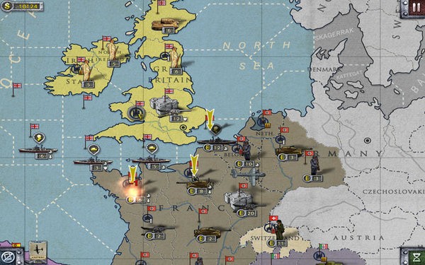 欧陆战争2的玩法丰富,可以选择德国、英国、法国、苏联4个国家为主线,进行16个战役的手游。