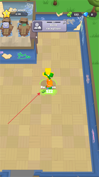 2、看到提示Build!reception!后,找到对应任务点,点击互动完成建造接待处相关任务,获得奖励。
