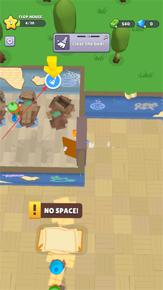 4、当出现Cleartheweed提示,操控角色到指定区域,点击清理杂草的按钮,完成清理任务,推进游戏进程。