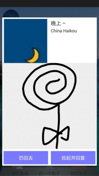 1、需要点击瓶子按钮,写下一些话语,然后把瓶子扔到大海,等待别人捡到你的瓶子。
