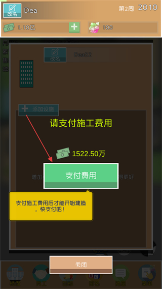 2、看到请支付施工费用提示,点击支付费用按钮,花费资金开始建设楼盘。
