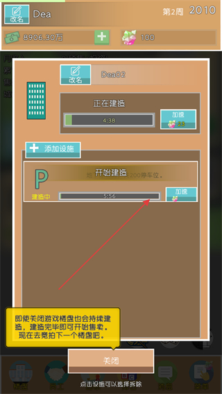 3、支付费用后,楼盘开始建设,点击加速按钮可加快建设进度。