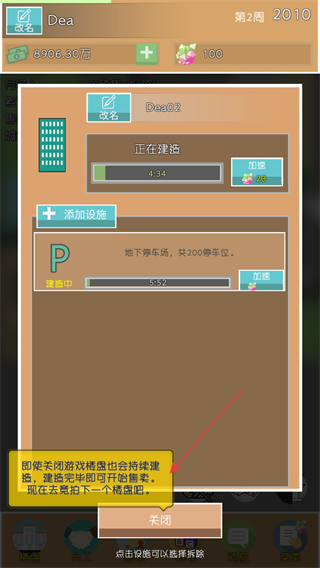 4、持续关注建设进度,等待楼盘建设完毕后进行售卖,完成任务目标获取奖励,推进游戏进程。