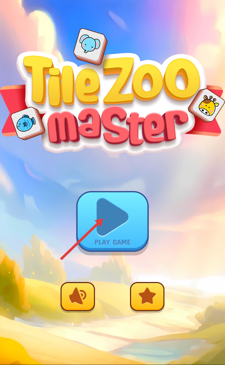 1、打开《TileZooMaster》游戏,点击蓝色【PLAYGAME】按钮,进入关卡开始动物瓷砖匹配挑战。