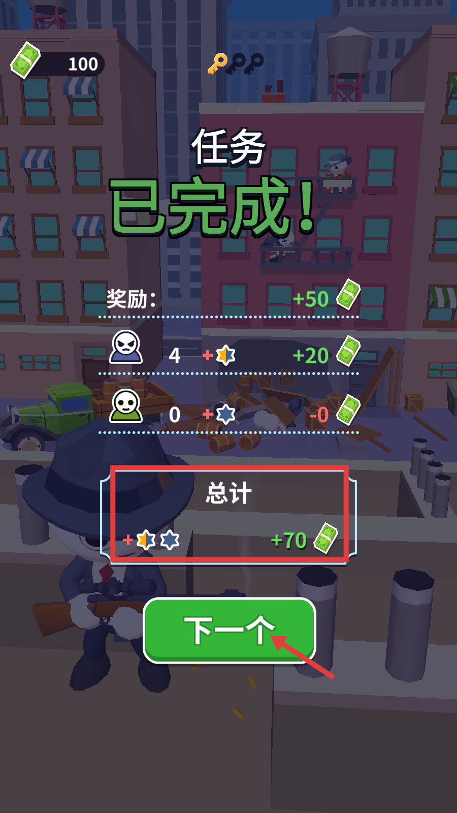 4、当界面显示【任务已完成】时,可领取总计+70的奖励,随后点击【下一个】按钮,继续挑战后续合约。