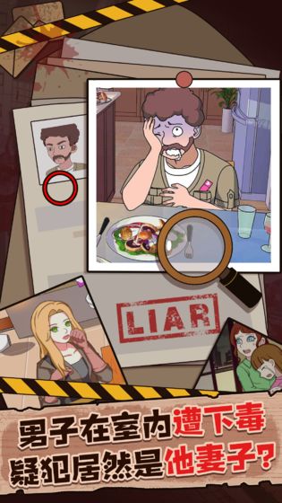 《谜案事件簿无广告版》这款游戏内玩家作为一名初级侦探,你必须努力工作,在每个案件中找到真相。游戏是由一系列独特而困难的案件关卡组成,你必须仔细观察犯罪现场,询问嫌疑人,并将这些线索联系起来,以找到真正的凶手。