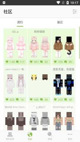 3、用户可上传作品供他人下载,浏览其他用户的创意皮肤,支持分类筛选、热门排行和搜索功能。