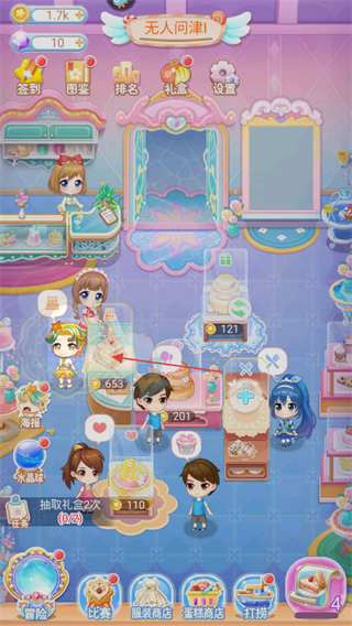 4、回到主界面,将制作好的蛋糕售卖,吸引顾客如不同造型的小魔仙和顾客,赚取金币,完成关卡目标。