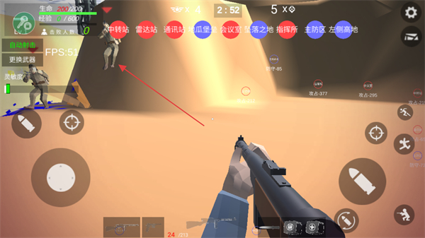 3、发现敌人后,瞄准并点击射击按钮,消灭敌方士兵。