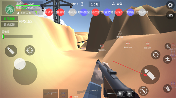 4、遭遇大量敌人时,点击手雷按钮,利用手雷进行范围攻击。