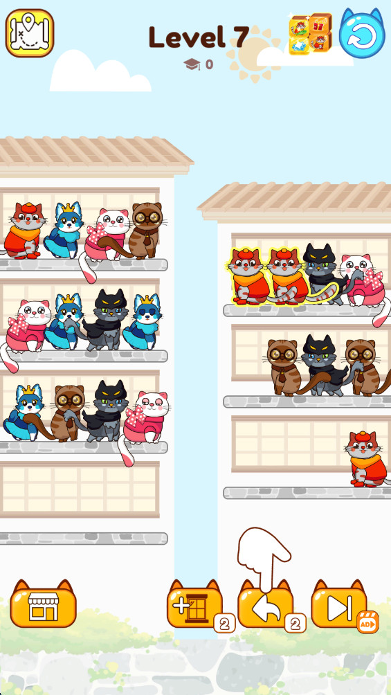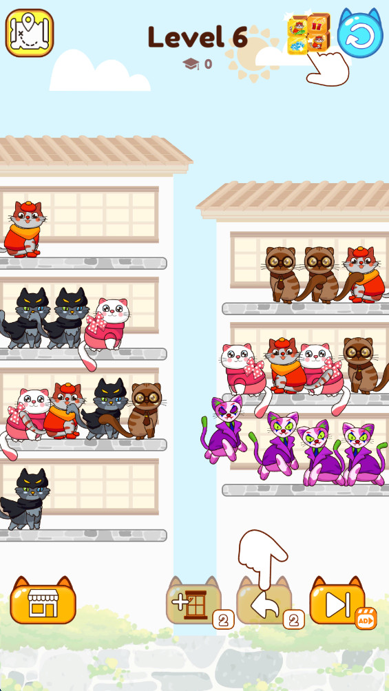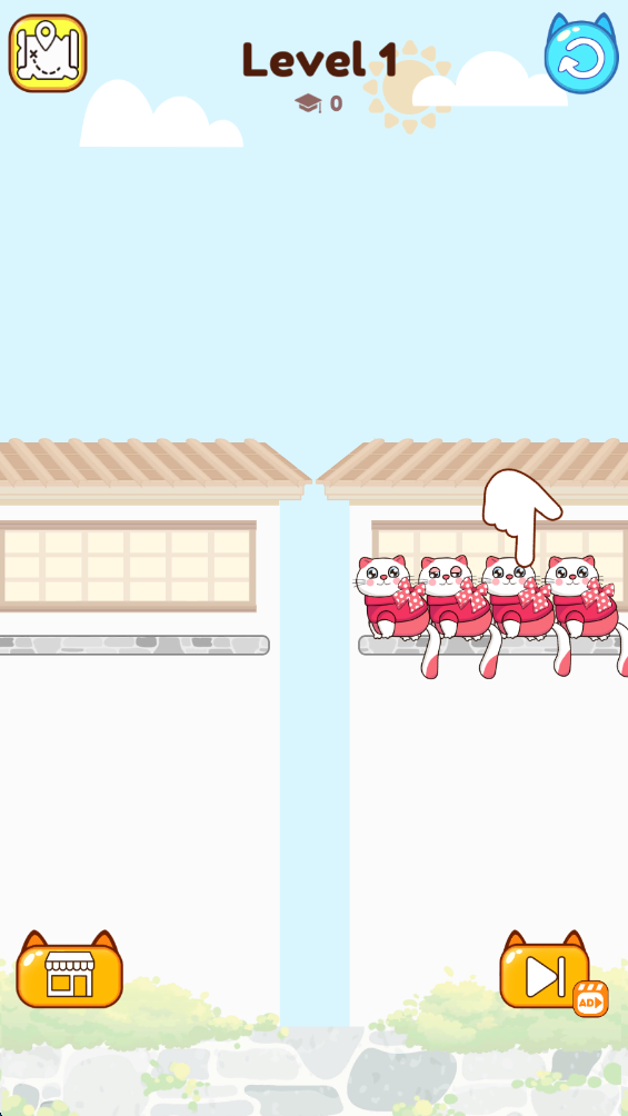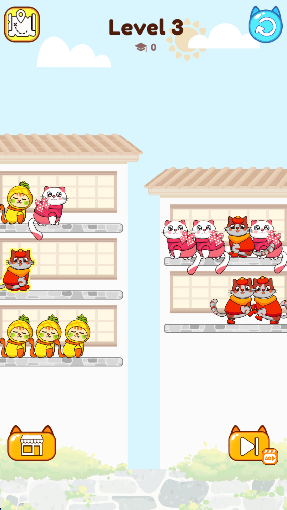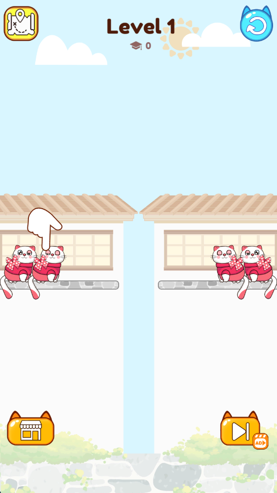 2.将一侧的猫猫移动到另一侧,让相同的猫猫出现在同一侧。