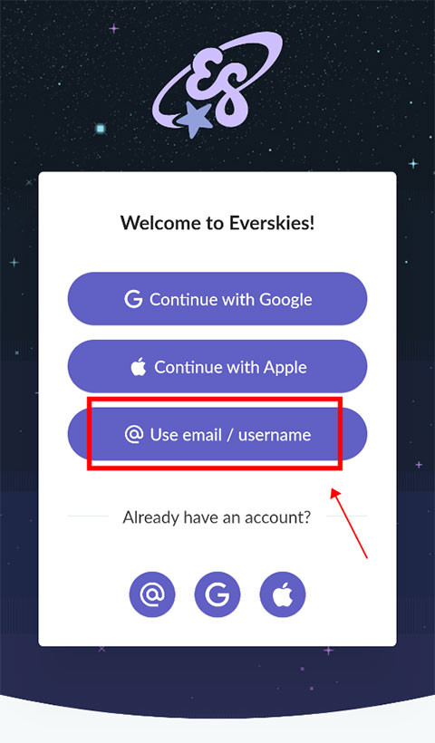 1.首先在本站下载安装好永远的天空虚拟装扮国际版,打开进入等待2~3分钟,选择登录方式“use email”。(不是bug,知识延时,需要耐心等一下)