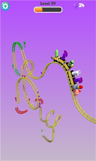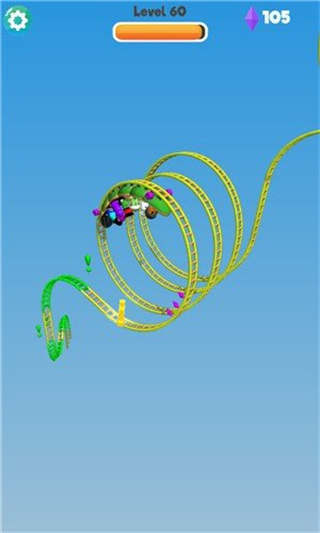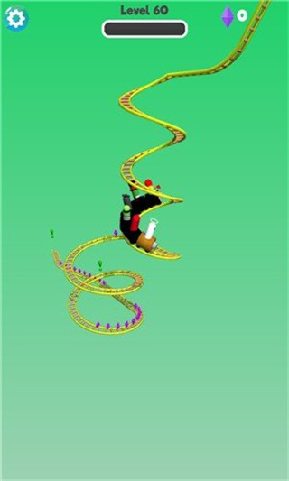 2、操控过山车在轨道上行驶,通过点击屏幕连接红色的铁轨,留意轨道变化,顺利通过弯道和坡道。
