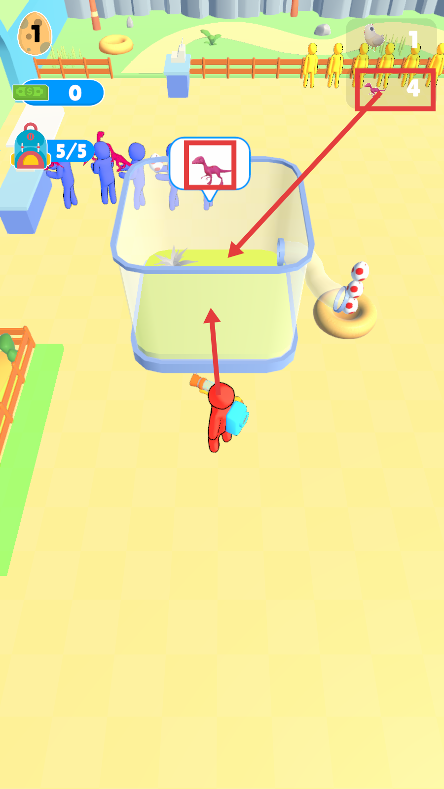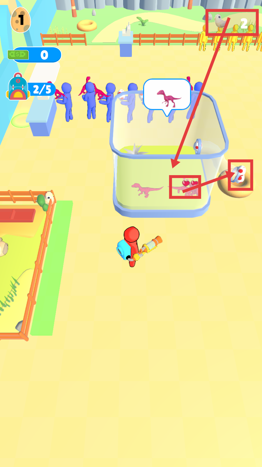 3、观察展区内的【粉色恐龙】,留意右上角其他物种数量变化,同时关注新元素,推进游戏进程。